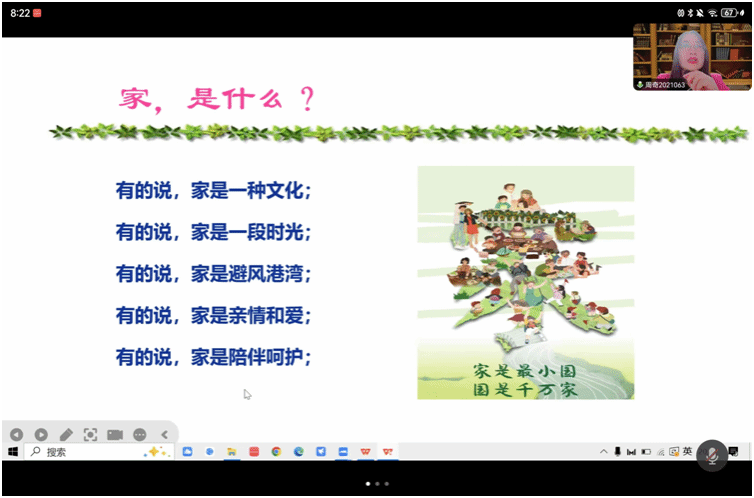 讲座中,周奇以“家是什么”作为话题引入,强调孩子成长和家庭教育指导的必要性,提倡父母要成为孩子的“第一任老师”。结合中小学生身心发展的特点,她从“什么是亲子沟通”“亲子沟通的困惑和常见问题”“亲子沟通的有效方式”等方面,逐层剖析亲子沟通。她提出理解沟通、合理期望、有效陪伴、积极倾听、榜样示范等方式方法,引导家长与孩子建立良好的亲子关系,共同成长、共同进步。