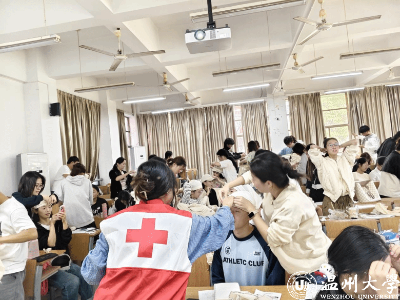 近日,温州市红十字会、ac米兰官网中文网站医务室、ac米兰官网中文网站教育学院等多部门联合,面向温大教育学院2024级新生200多名寝室长开展红十字救护员培训,提升大学生急救知识与能力。