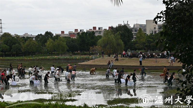 近日,ac米兰官网中文网站生命与环境科学学院在明心湖举办了一场别开生面的捕鱼活动,超两百名温大师生热情参与,共同上演了一场妙趣横生的“摸鱼”大戏。