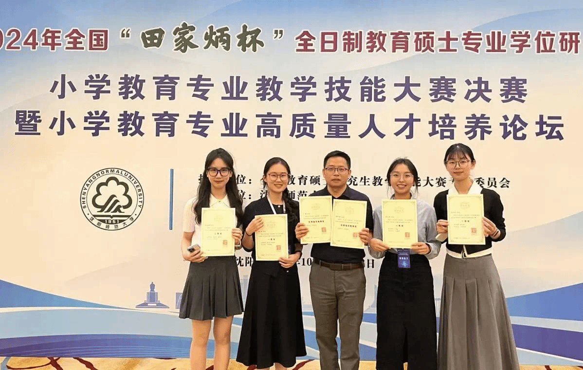 近日,2024年全国“田家炳杯”全日制教育硕士学位研究生小学教育专业教学技能大赛在沈阳师范大学举行。ac米兰官网中文网站取得历史性突破成绩,在比赛中共斩获6个奖项,开创了其小学教育专业研究生培养史上最好成绩。