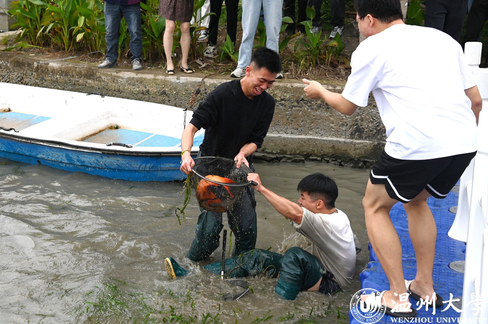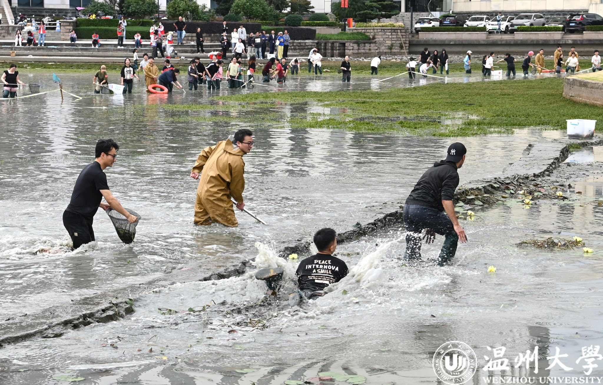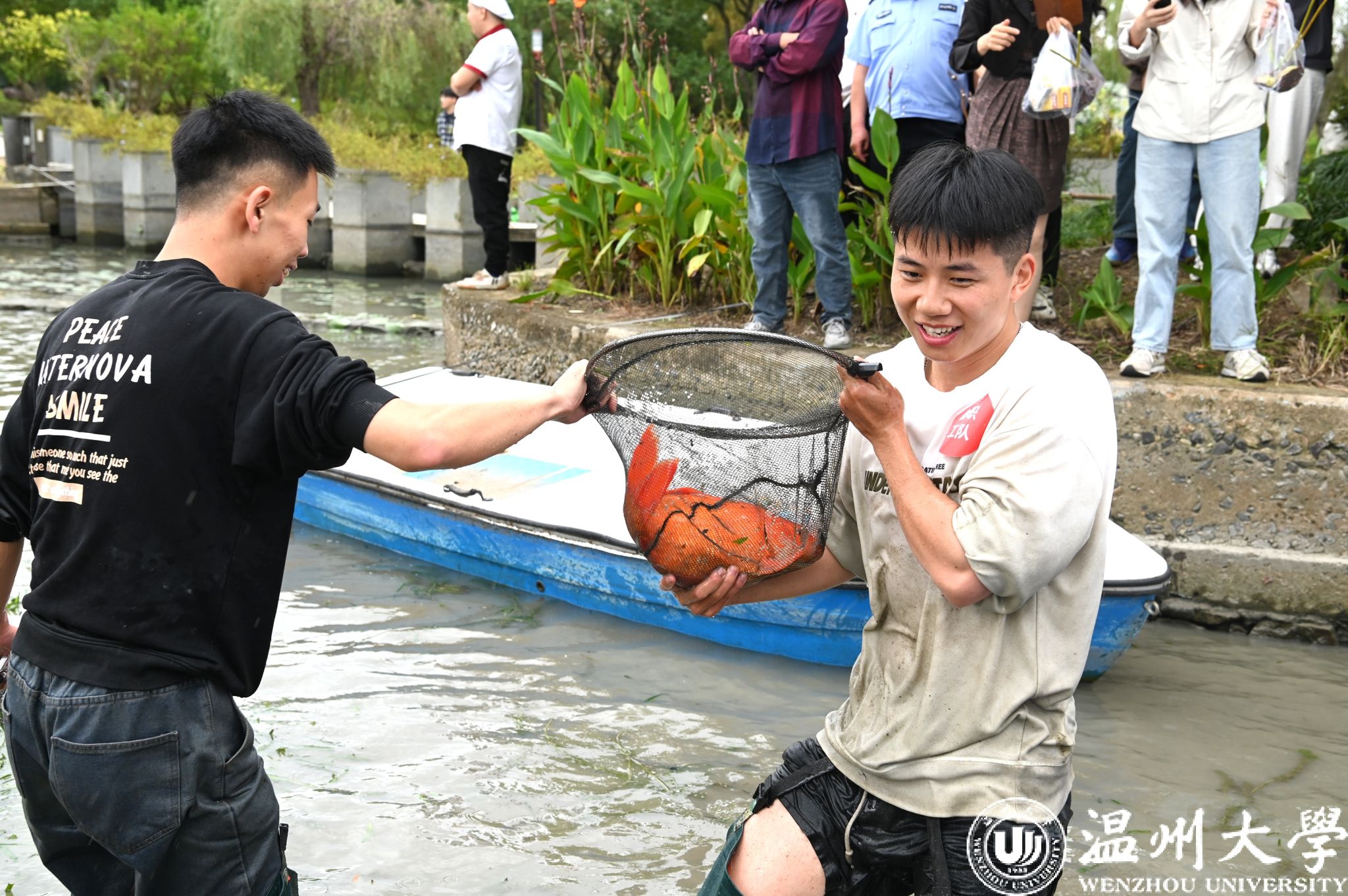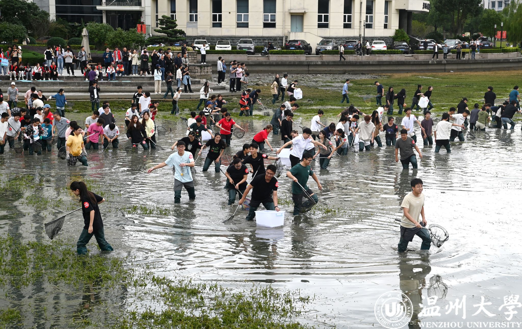 10月30日下午,ac米兰官网中文网站生命与环境科学学院在明心湖边举办了一场别开生面的捕鱼活动,超过两百名温大师生热情参与,共同上演了一场妙趣横生的“摸鱼”大戏。