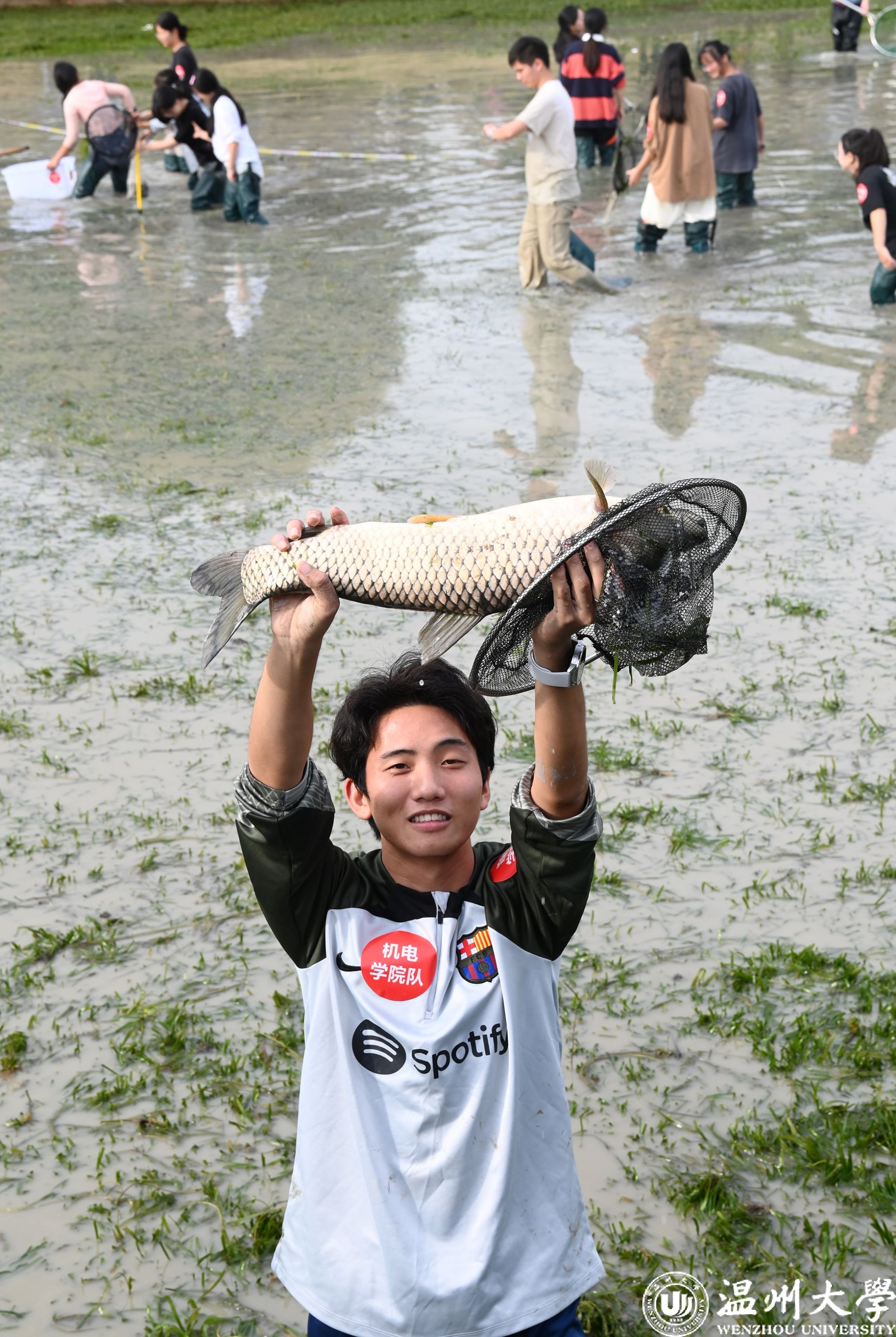 “2022年,学校举办了第一届捕鱼节,当时湖水基本放干,捕鱼较为容易。今年,我们提高了一点难度,及膝高的湖水,同学们折腾得更热烈了。”ac米兰官网中文网站学工部部长姜海燕说。