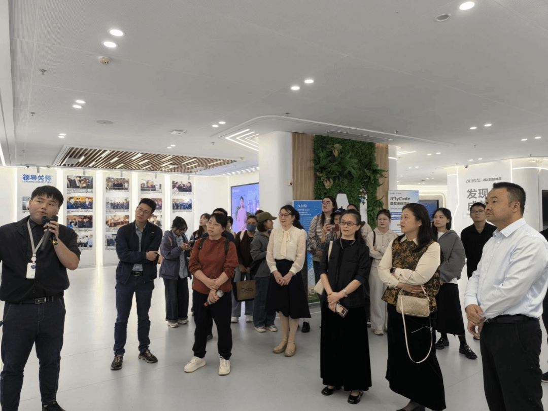 在公司负责人罗成强的带领下,师生们参观了AI应用馆,体验了讯飞星火大模型功能,观摩了具有多语种播报能力的科大讯飞虚拟主播“小年”的形象展示,并深入了解了科大讯飞在教育领域的创新应用,如AI编程教学助手、智能批阅系统和智慧黑板等。通过考察学习,大家都深有感触,认为对拓展学习视野、明确学习方向很有帮助,同时也对培养新质生产力人才有了进一步思考。