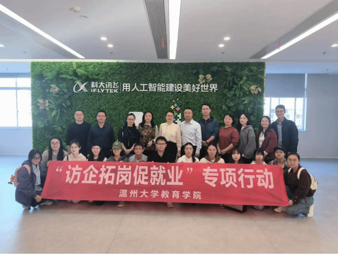 为积极培养符合新质生产力发展需求的优秀人才,同时加强温州市情教育促进留温工作,近日,ac米兰官网中文网站教育学院教育技术学系组织师生前往浙江科讯未来科技有限公司(科大讯飞)考察交流,通过深入了解人工智能领域的创新成果及广泛应用,进一步认识人工智能时代对新质生产力人才的新要求。