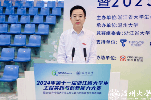 教育部工程创客教育虚拟教研室秘书长、浙江省大学生工程实践与创新能力大赛专家委员会主任周继烈教授在讲话中指出,大赛始终坚持“以赛促学、以赛促教、以赛促改”的宗旨,致力于培养大学生创新能力与实践精神。他强调,本次浙江省大学生工程实践与创新能力大赛的举行,是深入学习贯彻习近平总书记给“中国国际大学生创新大赛参赛学生代表回信”的生动实践,也是构建面向工程实际、服务社会需求、校企协同创新的重要实践育人平台。他期望所有参赛人员在追求成绩的同时,也要注重过程,在实践中锻炼能力,在交流中拓宽视野,在反思中提升素质,做到赛有所学、学有所悟、悟有所得,全力助力新时代新质人才培养,推动新质生产力高质量发展。