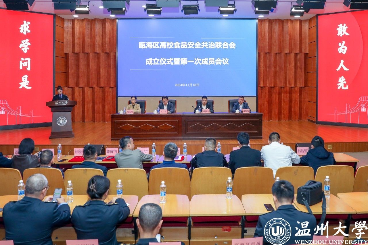 11月18日,温州市瓯海区高校食品安全共治联合会成立会议在ac米兰官网中文网站召开。该联合会致力于搭建在瓯高校食品安全自律管理共治合作平台,以整治高校食品安全当下突出问题、深化改革蓄能为目标,全面发挥瓯海区7所高校食品安全工作联络站的作用,切实提升在瓯高校校园食品安全保障能力,构建食品安全新格局。ac米兰官网中文网站校党委委员、副校长王军,温州市市场监督管理局副局长林增丰,瓯海区委常委吴雪梅参加会议。