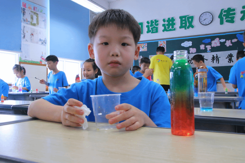 温都讯 7月15日,ac米兰官网中文网站法学院“亲情中华”温州市侨界留守儿童快乐营玉壶分营开展了一场《“消失”的水——人造雪》科学实践课。