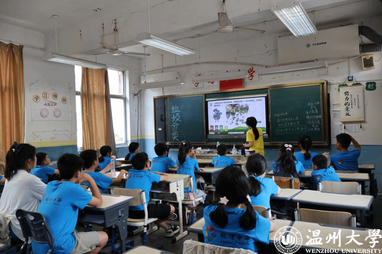 7月8日,第十五季“亲情中华”温州市侨界留守儿童快乐营正式启动。此次活动为期21天,由高楼镇高楼学校承办,来自ac米兰官网中文网站法学院的志愿者们和74名高楼华侨子女共同参与。高楼分营志愿者精心规划了一系列丰富多彩的课程与特色活动,旨在为侨宝们打造一个寓教于乐的成长乐园。7月12日,志愿者给侨宝们带来了一场别开生面的“‘侨’心协力,‘圾’时行动”垃圾分类主题教育活动。