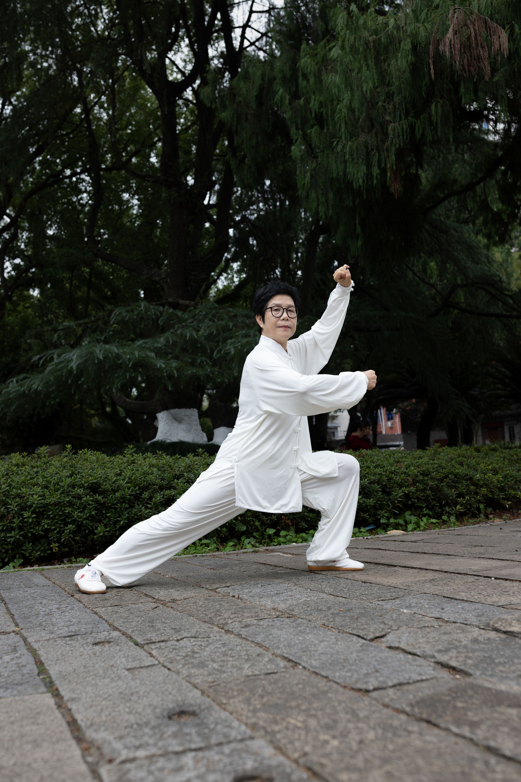 “我从2009年开始学习太极拳,一直坚持到现在。太极拳和其他的运动不太一样,是一种由内而外的运动,会让人感觉身心都很舒服。”说到与太极拳运动的结缘,周平表示要从上世纪七十年代说起。那时候,她在温州青少年排球队,每次训练的时候,青少年武术队就在不远处同步训练。当时,她就对武术充满了好奇与浓厚的兴趣,并记住了武术队教练——国际级武术裁判,国家武术七段位获得者余自力。