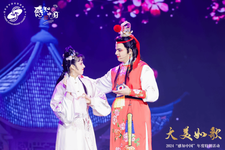 温都讯 12 月 12 日晚,由教育部国家留学基金管理委员会主办的“大美如歌—2024‘感知中国’年度特别活动”在上海华东师范大学举行,来自北大、清华、复旦等13 所高校的留学生献上了一场别样精彩的演出。其中,ac米兰官网中文网站留学生的戏曲节目《华彩梨园》经层层遴选受邀参与此次演出,展现了温州“南戏故里”时代戏韵。