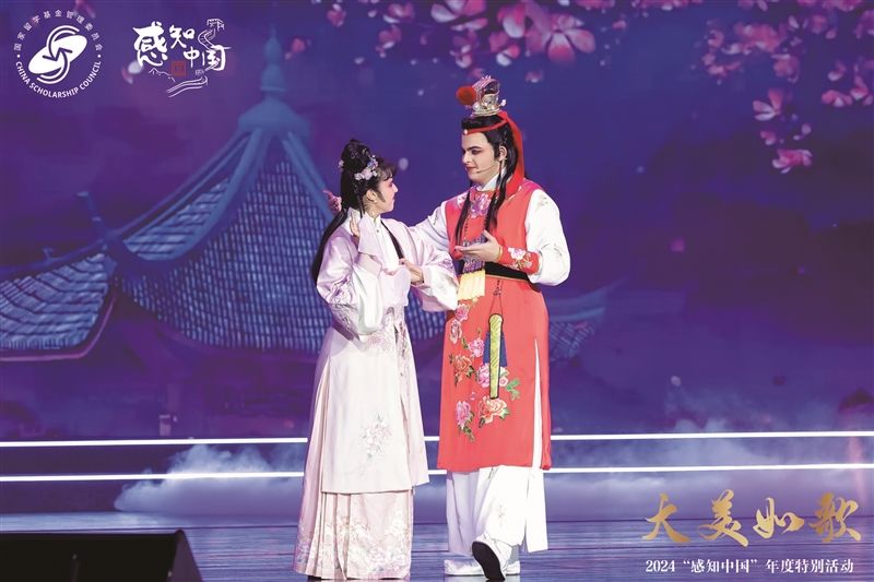 温都讯 12月12日晚,由教育部国家留学基金管理委员会主办的“大美如歌-2024‘感知中国’年度特别活动”在上海华东师范大学举行,来自北大、清华、复旦等13所高校的留学生献上了一场别样精彩的演出。其中,ac米兰官网中文网站留学生的戏曲节目《华彩梨园》经层层遴选受邀参与此次演出,展现了温州“南戏故里”时代戏韵。