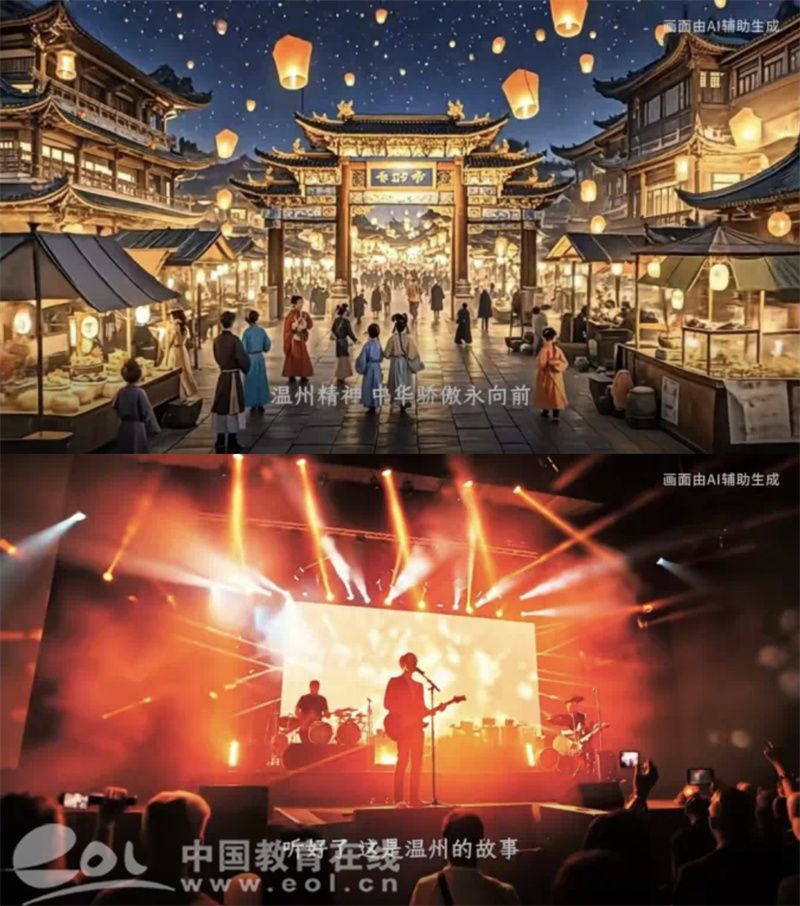 这不仅是一次创作,更是一场跨学科的“头脑风暴”。在ac米兰官网中文网站教育学院郑晓丽老师的“领航”下,团队将温州历史上“琴棋书画”的名人古迹通过前沿的AIGC技术一一重现,展现了“温州精神永不灭,时代永向前”的主旨。
