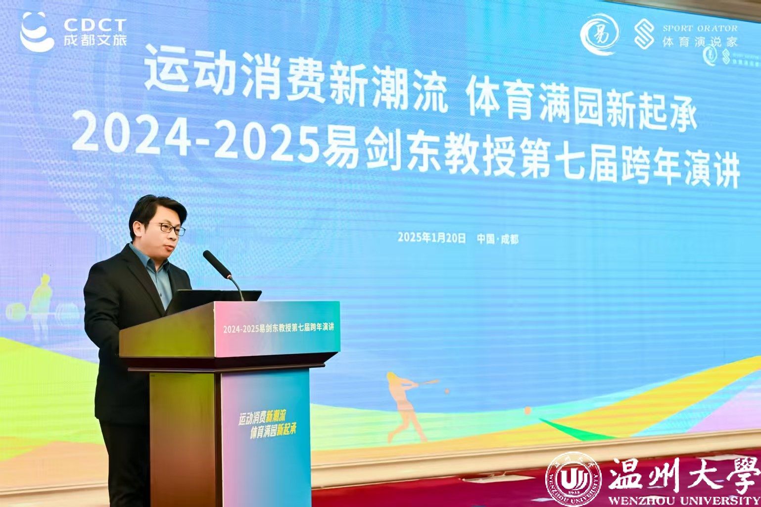 党建先锋成都电(杨俊报道)中国体育如何与世界共舞?1月20日,“易剑东教授第七届跨年演讲”在成都天府国际金融中心精彩开启,这是成都首次举办体育学术跨年演讲活动。易剑东教授以“中国体育如何与世界共舞”为主题,从全球视野出发,深度剖析中国体育如何把握机遇,应对挑战,实现与国际体育的深度融合,与世界同频共振。同时,探讨了体育消费市场的新趋势、新机遇,传递体育与产业相互赋能的理念,营造全城迎世运的良好氛围,为听众呈现了一场交融与碰撞的体育思想盛宴。