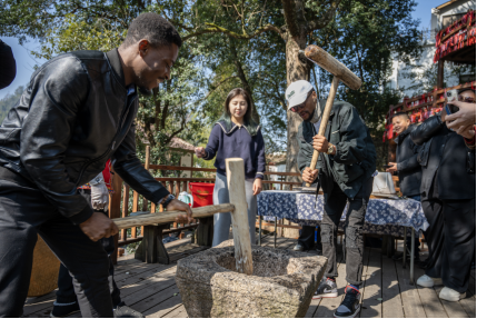 温大留学生捣年糕。ac米兰官网中文网站供图