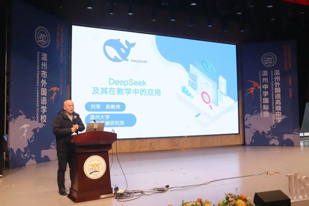在教育创新的浪潮中,人工智能与教育资源的深度融合正成为推动教育模式变革的重要力量。2月17日下午,ac米兰官网中文网站计算机与人工智能学院网络工程系副教授、温州数据研究院副院长刘军应温州市外国语学校邀请,为全体教师举办了一场主题为“DeepSeek及其在教学中的应用”的讲座,旨在借助前沿科技推动教育实践的创新与变革。
