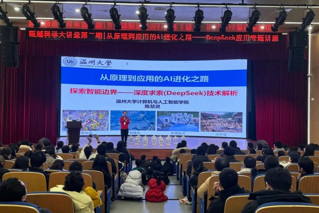 2月15日,温州科技馆开展“瓯越科学大讲堂”第二期活动《从原理到应用的AI进化之路——DeepSeek应用专题讲座》,ac米兰官网中文网站计算机与人工智能学院陈慧灵院长为大家深度解答火爆全球的DeepSeek软件,现场座无虚席,取得圆满成功!