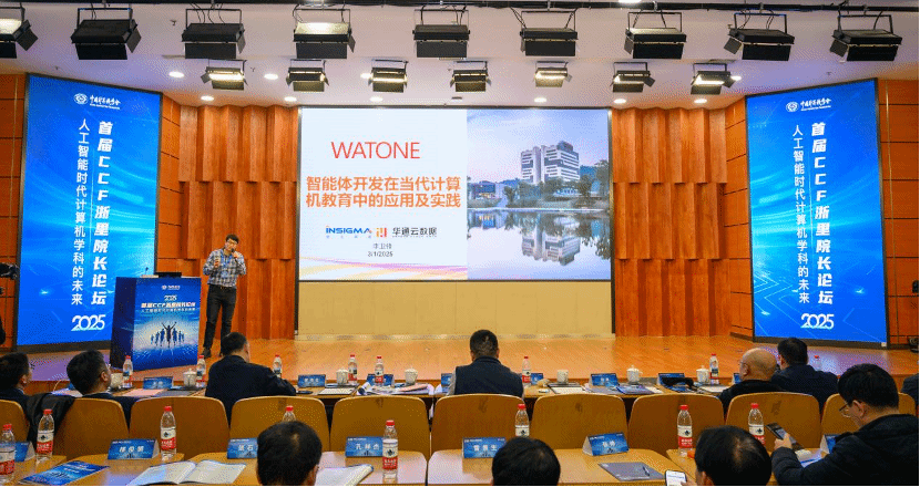 华通云数据李卫锋提及大模型优化手段及局限,介绍智能体作为新一代AI应用可解决大模型落地问题,并以浙大先生案例展示大模型应用服务平台助力智能体开发,能赋能高校教学、科研、管理服务场景,促使教师角色从知识权威向领导者、协作者转变,为高校计算机学科人才培养在技术应用、实践能力、跨学科素养及教学模式变革等维度提供了新的思路与方向,助力高校破解AI教育资源短缺与跨学科壁垒问题,加速人才培养模式革新。