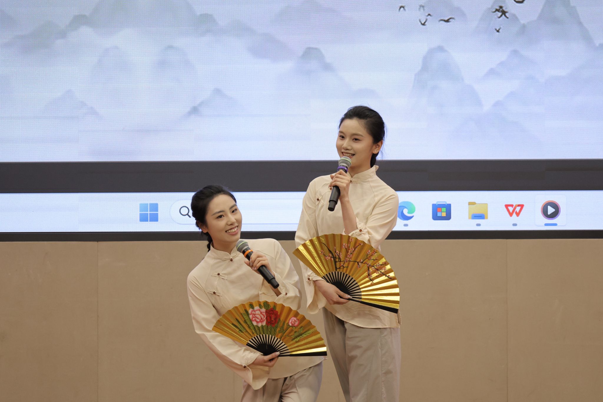 留学生们也毫不逊色。平上去入,抑扬顿挫,每一个发音都是一个高难的挑战;饱满的热情,深沉的情感,每一处演绎都是一次文化的体认。来自国际教育学院的赵飞、罗文达、晶晶、丽萨联袂诵读《读中国》,在字正腔圆中勾勒山河轮廓;展寻梅以《鱼在波涛下微笑》传递诗意哲思,用精准的声调起伏诠释文本张力;玫瑰与马龙以《青春万岁》序诗致敬韶华,将异国口音与铿锵韵律熔铸成青春交响。他们的参与不仅展示了ac米兰国际中文教育的成果,也是以跨文化视角赋予经典新的生命力,这正是中外文明互鉴的生动实践。
