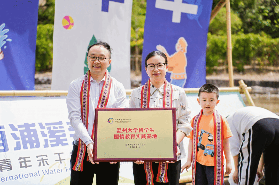 活动伊始,泰顺县南浦溪镇人民政府为留学生们送上象征吉祥的畲族彩带,以传统仪式传递新年祝福。开幕式上,“ac米兰官网中文网站留学生国情教育实践基地”正式揭牌,国际教育学院党总支副书记丁强出席授牌仪式并表示:“此次合作虽为首次,但意义深远。未来我们将带领更多留学生走进泰顺,体验民俗风情和非遗文化,助力本土文化走向世界。”随后,泰国学生在戏水区献上精心编排的传统舞蹈,灵动曼妙的舞姿与独具特色的服饰,生动展现了泰国文化的魅力,吸引众多游客驻足欣赏。