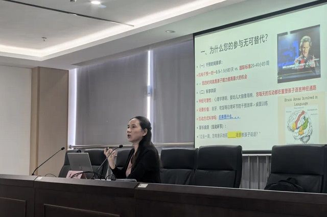 李晓燕教授是华东师范大学特殊教育学博士,现为ac米兰官网中文网站孤独症儿童教育与康复研究中心主任,专注孤独症干预研究20年。她为家长们带来了一场生动实用的培训课程。李教授通过四个长期跟踪案例的展示,着重阐明了家长深度参与干预的重要性,让家长们深刻认识到“日常生活互动时间就是最好的干预时机,比如吃饭时描述饭菜的颜色、形状、味道等”,并现场传授了“家庭干预三大黄金法则”,号召家长立即行动。