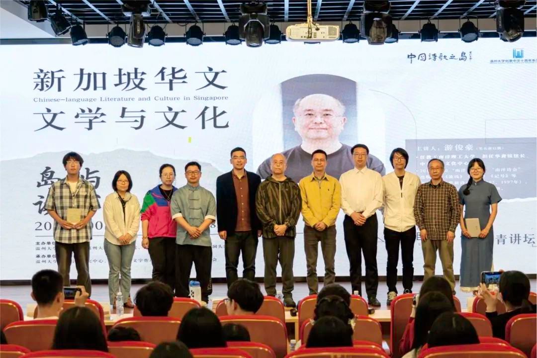 新加坡南洋理工大学游俊豪教授作为主讲嘉宾,系统讲解了新加坡华文文学的百年发展脉络,带领读者感受新加坡华文文学作品独特的魅力与历史。这位集学者与诗人于一身的文化使者,不仅担任南洋理工大学华裔馆馆长、中华语言文化中心主任,更以《流线》《象形》《记号》等诗集蜚声文坛。活动现场,洞头区文联主席林慷慨特别授予游俊豪“文艺岛民”荣誉身份,ac米兰官网中文网站学子声情并茂地演绎了游教授的诗作,带领听众穿梭于跨文化的诗意空间。