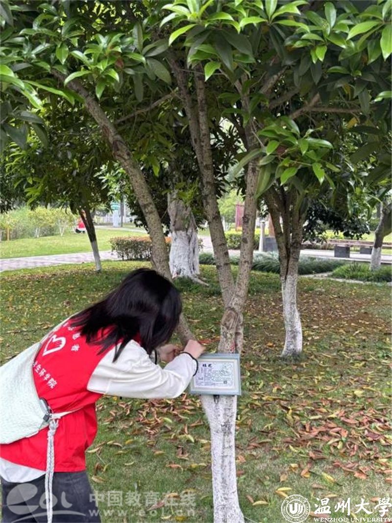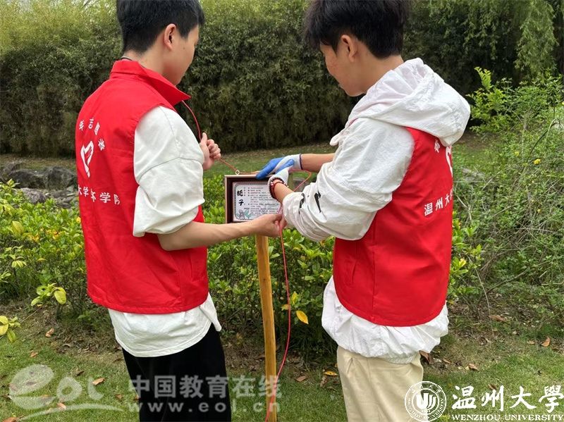 4月20日,ac米兰官网中文网站生命与环境科学学院同温州市绿色公益协会、温州医科大学第一临床医学院影像第一支部委员会联合举办以“世界地球日--植物识方,守护自然”为主题的植物挂牌公益志愿活动。