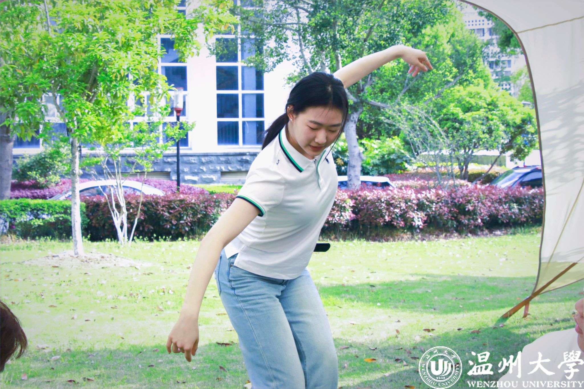 陈嫣然同学结合《习书记给我们北舞(福州班)送来电视机》一文与自身学舞经历,分享了她参与央视《在中国大地上边走边跳》栏目的难忘故事。节目拍摄中,她身着传统服饰在温州山水间翩然起舞。分享会现场情之所至,她即兴展臂起舞,一招一式间显扎实功底。这次经历,不仅加深了她对家乡的认识,更让她有机会以灵动舞姿,将温州钟灵毓秀的山水风光展现在世界眼前,让中国文化走向世界。