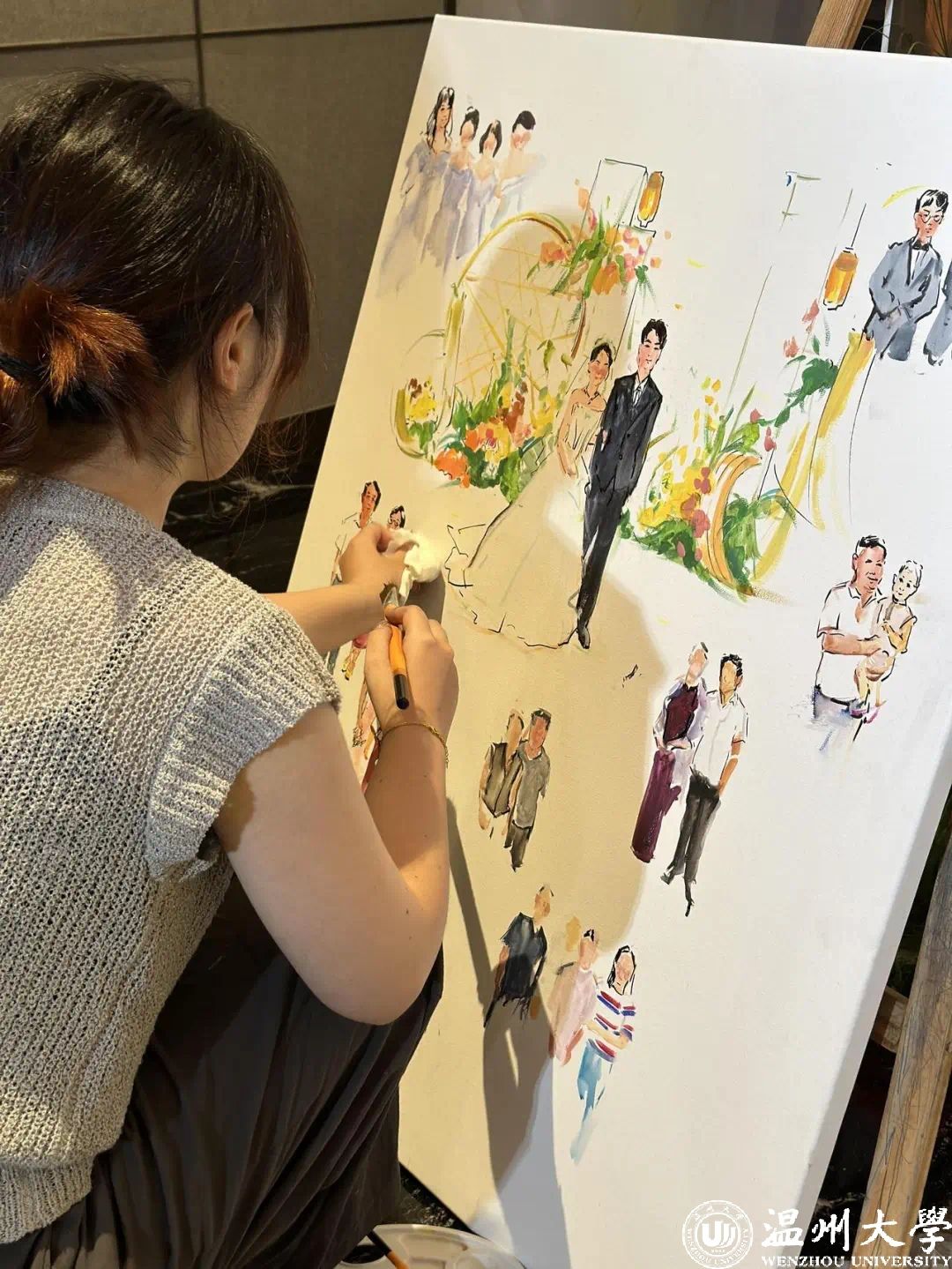 冯奕涵,ac米兰官网中文网站美术与设计学院的应届毕业生,就选择了婚礼绘画师作为其职业道路。她表示:“我已适应频繁出差的工作模式,并习惯于在婚礼现场保持高度专注。我致力于用画笔,在数小时之内为新人捕捉他们人生中最甜蜜时刻的画面。”在接受采访时,她向我们分享了她的经历。