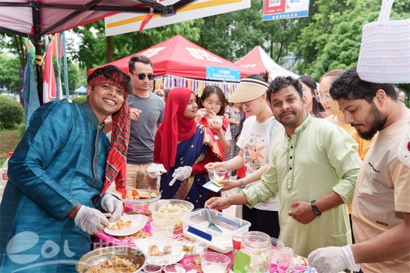 现场还设置了国际文化与美食体验区。Cosplay秀上,留学生们身着各国特色服饰,演绎不同文化角色。各国美食摊位前香气四溢,土库曼斯坦的烤馕、摩洛哥的咖啡、越南的春卷、泰国的芒果糯米饭等应有尽有。留学生们一边分享美食,一边用母语和汉语介绍美食背后的文化故事,不同文化在这里碰撞出绚丽的火花。