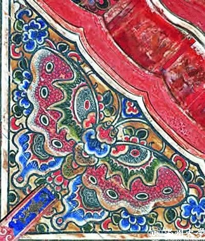 ④温州文成县东方村方坑太阴宫戏台平棊天花四角的蝴蝶彩绘