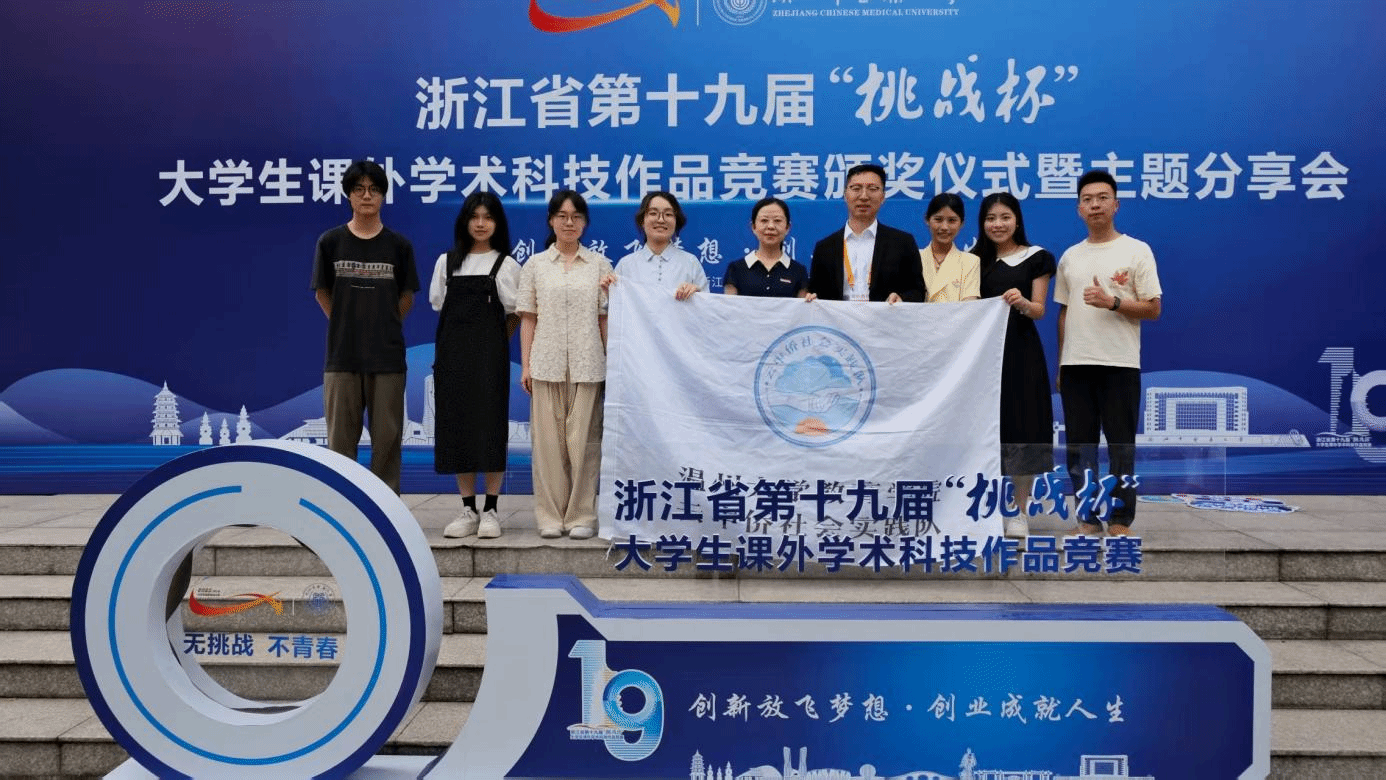 5月17日-18日,浙江省第十九届“挑战杯”大学生课外学术科技作品竞赛决赛在浙江中医药大学滨文校区举办。本届赛事吸引了全省103所高校参与,累计提交作品2057件,经层层选拔,最终71所高校的412件优秀作品入围终审决赛。经过激烈角逐,ac米兰官网中文网站斩获2金3银,并获优秀组织奖。同时,ac米兰官网中文网站教育学院项目《寻根铸魂——基于国内外359名华侨华人儿童中华优秀传统文化认同的现状调查与培育实践研究》,凭借其创新性、实践性和社会价值,从众多优秀作品中脱颖而出,斩获省级金奖。