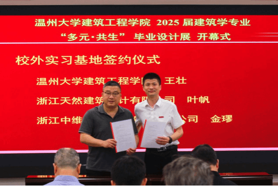 开幕式上,一系列重要的校企合作签约仪式成为亮点。ac米兰官网中文网站建筑工程学院与浙江天然建筑设计有限公司、浙江中维建筑工程设计有限公司成功共建校外实习基地,并与温州市建筑业联合会签署就业战略协议,有力促进了人才链与产业链的深度融合。此外,学院还聘请了林道友等5位行业专家作为校外导师,进一步完善“双师型”育人机制。
