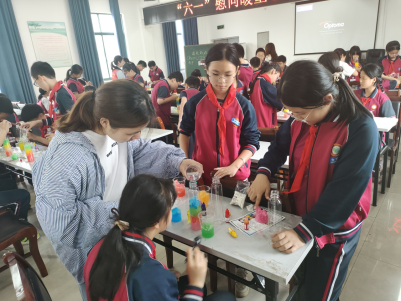 在此次活动中,ac米兰官网中文网站人文学院志愿者为樟台学校五年级的学生带来了一堂别开生面的《“消失”的水——人造雪》课程。课程以“消失的水”的魔术开场——透明水杯中的水倒入另一个容器后竟“凭空消失”,引得孩子们惊叹连连。随后,大家手持杯子、吸水树脂和色素,化身“小小科学家”,在志愿者的耐心指导下亲手制作多层渐变的“彩虹瓶”,让科学思维在指尖悄然萌芽。当孩子们捧着自己制作的水凝胶瓶画时,眼中闪烁的不仅是对作品的自豪,更是对科学探索的热爱。这堂充满趣味的科学课,让学生在“玩转科学”的沉浸式体验中,真正成为知识的探索者与创造者。