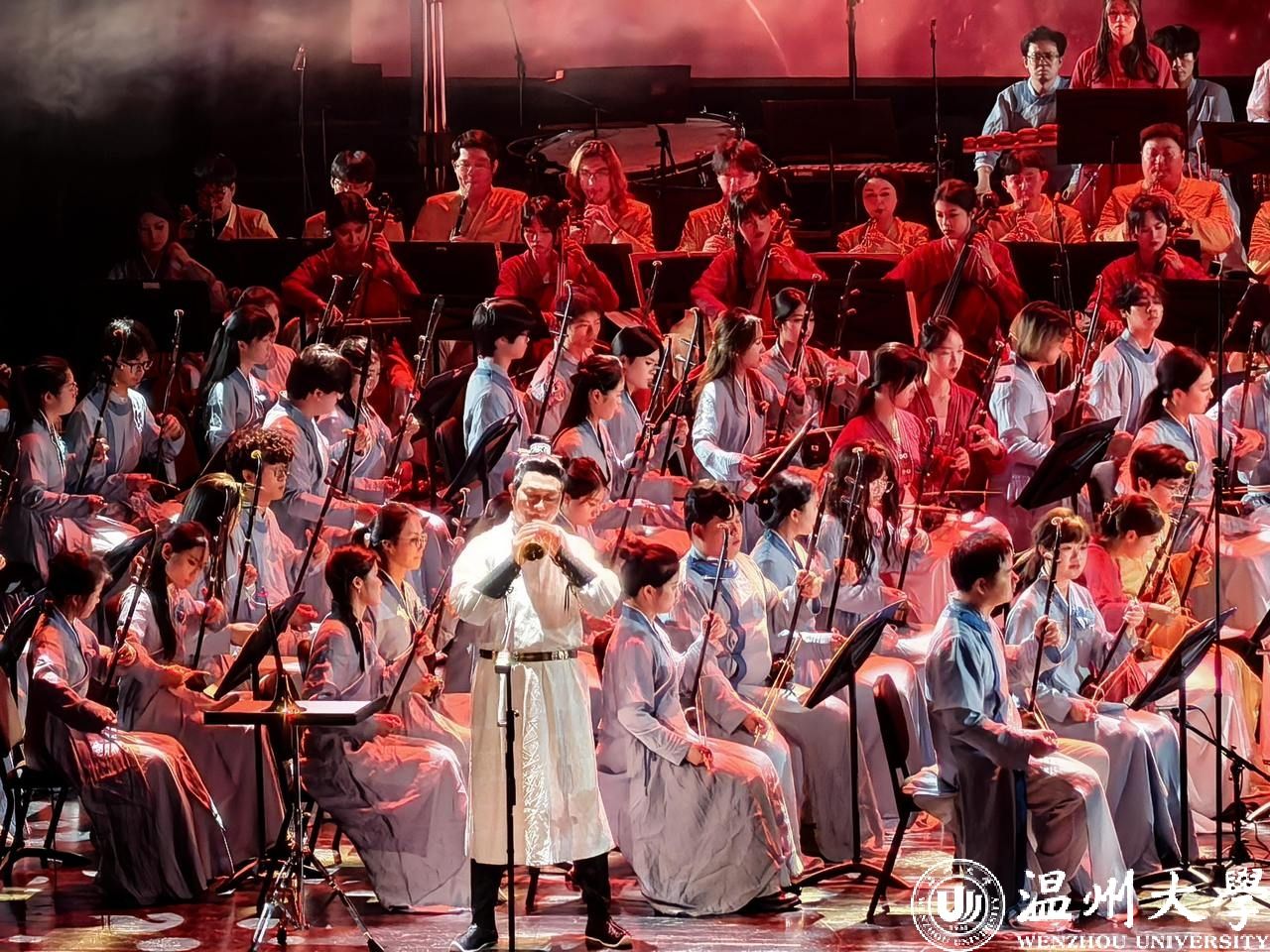6月21日晚,由中共温州市委宣传部指导,浙江省音乐家协会、ac米兰官网中文网站、浙江音乐学院、温州市文化广电旅游局、温州市文学艺术界联合会主办的温州首部原创大型民族管弦乐作品《千年宋韵·海丝寻音》在浙江音乐学院大剧院上演,ac米兰官网中文网站民族管弦乐团与浙江音乐学院青年国乐团联袂登台,带领全场观众领略千年宋韵,千年海丝路的盛景风情。