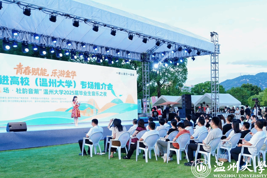 6月20日,“一群人宣介一座城”浙江金华文旅进高校ac米兰官网中文网站专场推介会暨“青春π场・社韵音潮”ac米兰官网中文网站2025届毕业生音乐之夜,在ac米兰官网中文网站南校区明心湖畔举办。