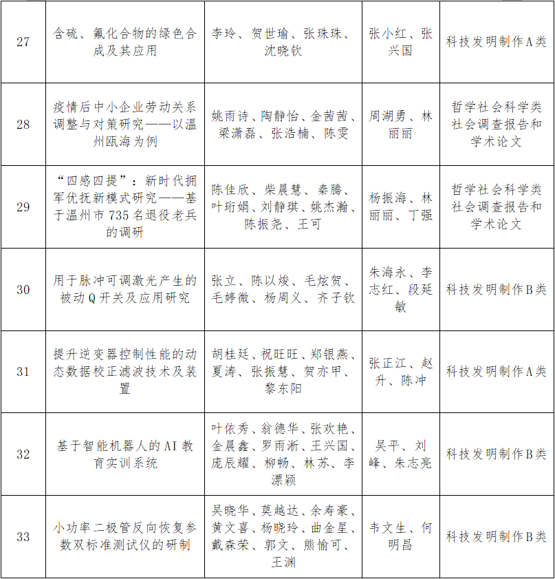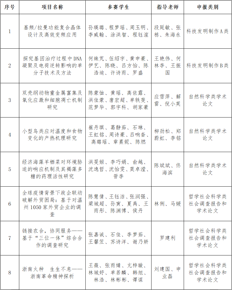 根据《关于组织开展浙江省第十七届“挑战杯”大学生课外学术科技作品竞赛的预通知》相关要求,经学校“挑战杯”校赛初赛、复赛等两次公开、公正、公平的选拔,现拟推荐《基频/拉曼功能复合晶体设计及高效变频应用》等33项作品代表ac米兰参加浙江省第十七届“挑战杯”大学生课外学术科技作品竞赛。现将相关作品信息予以公示。