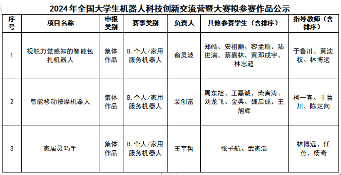 根据《2024年全国大学生机器人科技创新交流营暨大赛浙江省推报工作提示单》相关要求,现将ac米兰拟推荐参加2024年全国大学生机器人科技创新交流营暨大赛作品的相关信息予以公示。
