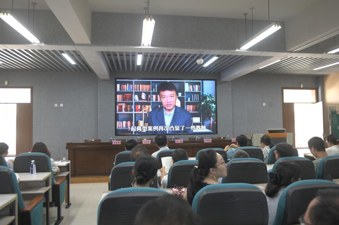 首先开展师德师风警示教育。全体教职员工观看《教育部通报7起典型案例,师德违规零容忍》视频短片。该片通过公开曝光违规获取津贴、学术不端、拍摄不雅视频等多起违反教师职业规范的典型案例,警示教师恪守职业道德。何毅书记结合警示教育案例,传达了习近平总书记致信全国优秀教师代表重要指示精神和全国优秀教师代表座谈会精神、学校教师节座谈会精神。会议强调,教师队伍建设是建设教育强国最重要的基础工作,各位老师要大力弘扬教育家精神,牢记为党育人、为国育才的初心使命;要修身正己,立德树人,涵养大格局;要严谨治学,锤炼能力,做好大学问;要敬业担当,开拓创新,展现大作为。