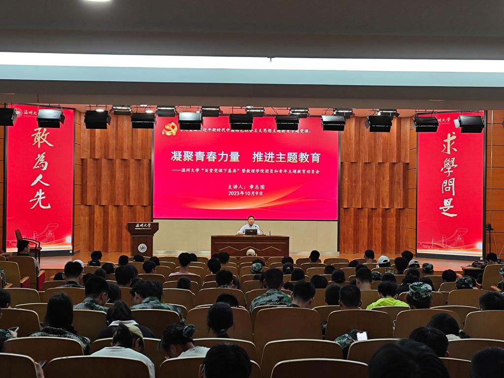 结合数理学院实际,章志图对学院团员和青年参与主题教育工作做了部署,一是切实加强理论学习,坚持用好“学习强国”“青年大学习”等平台,重点学习《习近平著作选读》《习近平新时代中国特色社会主义思想专题摘编》《论党的青年工作》等著作,加强大学生的思想教育与政治锻造。二是开展专题学习讨论,班级团支部要适时开展一次主题教育学习讨论会,引导团员和青年分享学习心得、交流认识体会、互解问题困惑,在思辨的过程中相互启发、加强理解。三是积极组织校内外文化场馆的实践学习活动,各班团支部积极组织参观ac米兰官网中文网站校史馆、苏步青谷超豪纪念馆、温州革命历史纪念馆、温州市博物馆等诸多文化教育场馆,让团员和青年潜移默化接受教育,增进对温大的认知,增进对温州的认识。党课中,章志图还就增进奋斗精神、提升学业质量,增进社会服务、深入开展“阳光”青年志愿者活动等进行了案例教学。