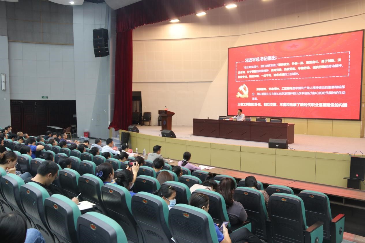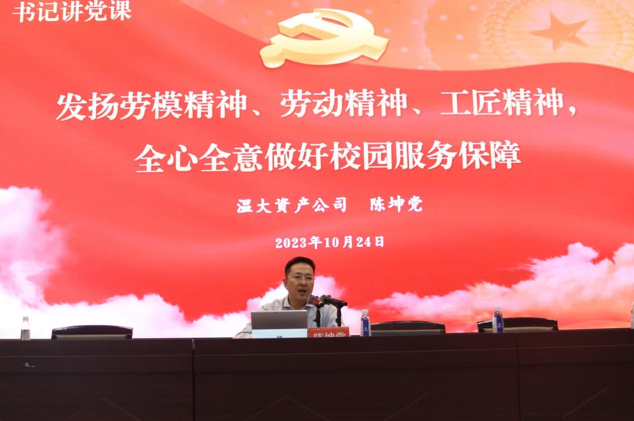 按照学习贯彻习近平新时代中国特色社会主义思想主题教育“学思想、强党性、重实践、建新功”的总要求,落实ac米兰官网中文网站关于县处级干部“百堂党课下基层”活动,全面提升公司党员党性修养,团结职工奋进力量,资产公司党总支于10月24日在南校区9号楼报告厅,公司党总支书记陈坤党面向全体职工开展了主题教育书记党课,主题是“发扬劳模精神、劳动精神、工匠精神,全心全意做好校园服务保障”。