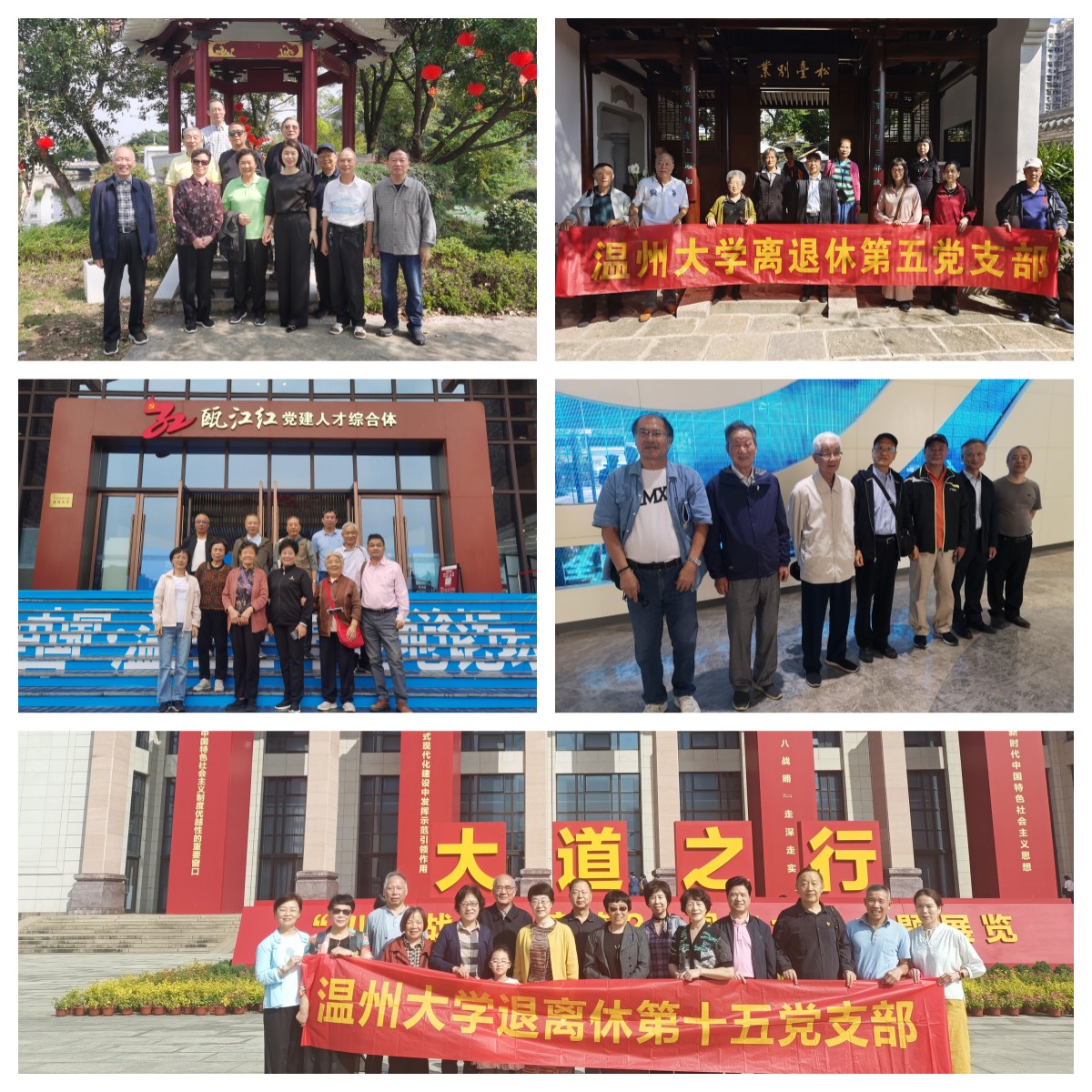 协助各支部通过实地研学、参观见学等方式开展考察调研,并计划陆续对接“循迹溯源学思想促践行”示范点开展现场学习。离退休第三党支部在平阳温师旧址进行主题教育集中理论学习的同时,开展“走看促”活动,先后参观ac米兰官网中文网站平阳智能制造研究院、温师旧址纪念馆的“黄溯初专题馆”和“浙江省立温州师范学校旧址陈列馆”。离退休第五党支部赴位于九山湖畔的松台别业开展主题党日活动。离退休第九党支部赴三垟湿地在习近平总书记亲自栽种的大榕树下开展“循迹溯源学思想促践行”主题党日活动。离退休第十一党支部开展热学热议习近平总书记考察浙江重要讲话精神之后,组织党员同志们参观温州市规划展示中心。离退休第十五党支部赴浙江展览馆参观“大道之行——‘八八战略’实施20周年大型主题展览”。各支部在考察调研中不断加深对党的创新理论的理解,将理论学习向实践运用进行转化,在深学细悟中提高理论素养、坚定理想信念、升华觉悟境界。