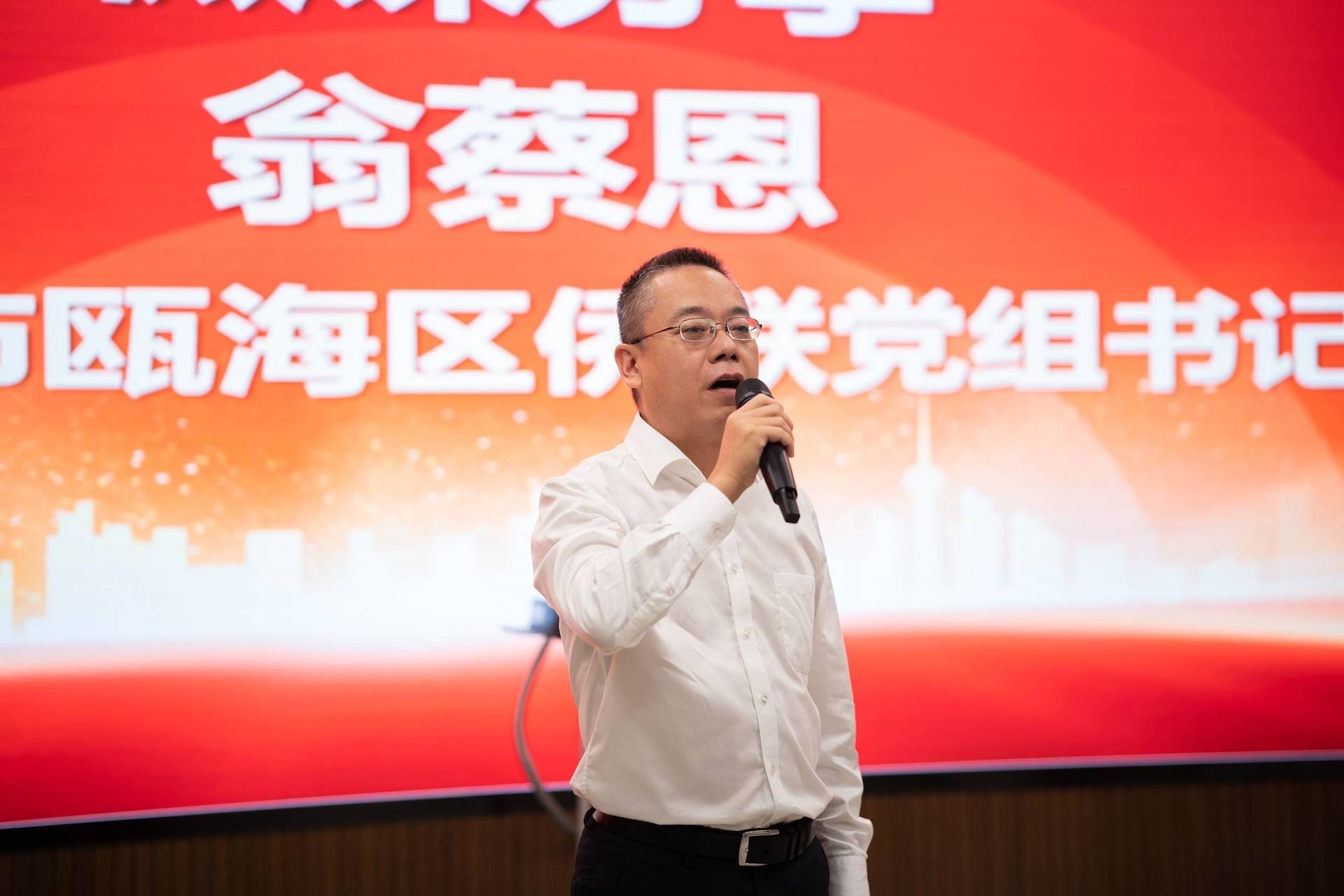 主题思政课上,瓯海区侨联党组书记翁蔡恩首先分享了他对华侨精神的理解,以及瓯海侨胞在助力家乡发展、推动经贸往来、扩大海内外友好交流的感人事迹。