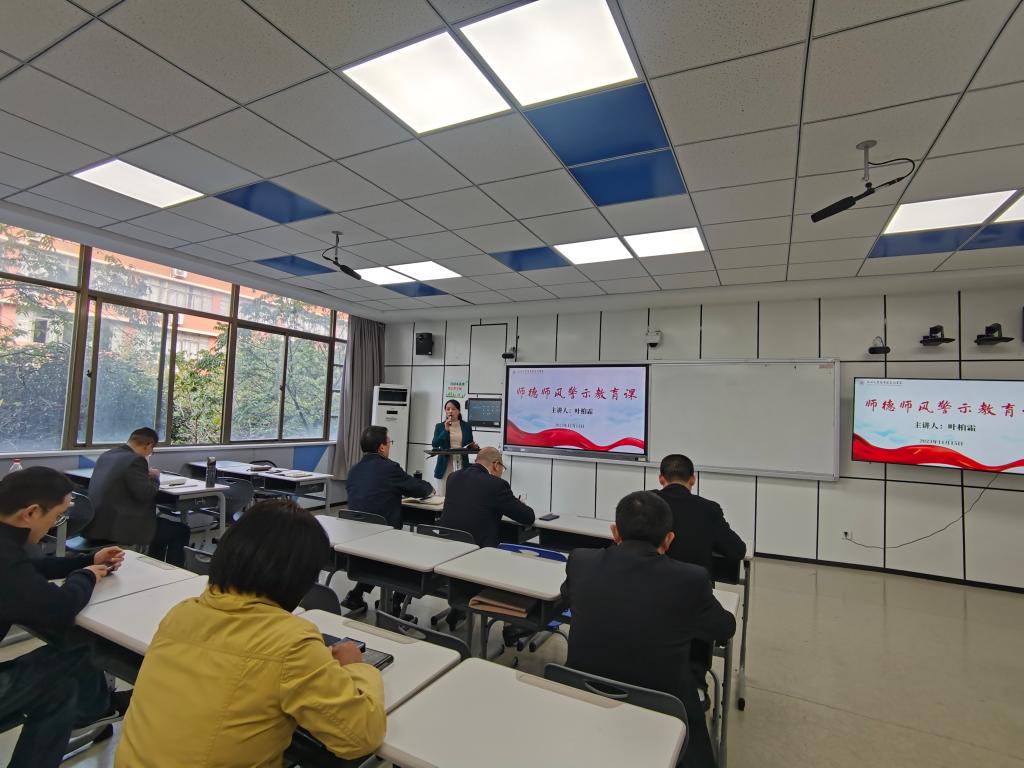 纪委书记叶柏霜通报了2017年以来校内14个师德师风违规案例和校外6类17个典型案例。案例涉及违反政治纪律、违反廉洁从教、违反生活纪律、侵害学生权益、违反法律法规、违反学术诚信等六大方面。叶柏霜副书记指出,师德师风警示教育是一项重要的工作,也是一项需要常抓不懈的工作,旨在提高教师的职业道德素质,增强责任感和使命感。全体马院教师要坚守师德师风底线,远离红线,以思政课教师“六个要”高标准严格要求自己。