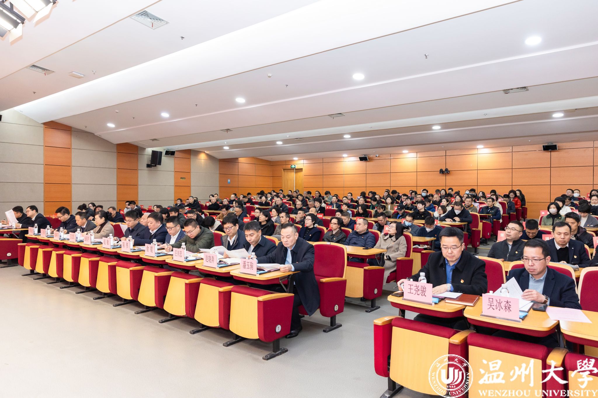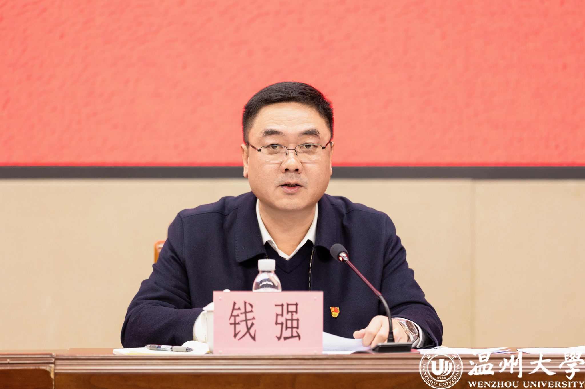 钱强强调,主题教育没有休止符,党的建设永远在路上。奋进新征程,学校要以习近平新时代中国特色社会主义思想为根本遵循,深化巩固主题教育成果,奋力建设高水平大学、争创“双一流”高校,努力打造浙南闽北赣东“人才引育主阵地、科技创新主力军、产业发展主引擎”,全力服务新质生产力发展,为浙江“勇当先行者、谱写新篇章”和温州“续写创新史、走好共富路、争创先行市”作出更大贡献。